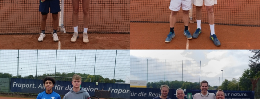 Im Herren Doppel lagen Christian Müller und Holger Dohrmann, der erstmals überhaupt in einem Finale stand, mit 3:6 zurück. Sie kamen gegen Gerhard Anthes und Kai Steinhaus aber immer besser ins Spiel und sicherten sich den umkämpften zweiten Durchgang im Tiebreak. Im CTB waren beide weiter im Flow und führten 9:0, sie siegten am Ende mit 10:2. Im Spiel um Platz 3 führten Robin Anthes und Julien Kunz gegen Nils Mainert und Daniel Stephan mit 6:2. Bei Nils und Daniel lief wenig zusammen, doch wie ausgewechselt agierten sie im zweiten Satz und schlugen mit 6:1 postwendend zurück. Nils und Daniel gingen im CTB 3:0 in Führung, machten danach jedoch Leichtsinnsfehler, Julien und Robin nutzten dies zum 10:4 aus.