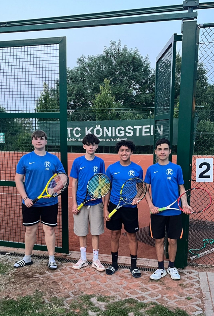Die U15 Junioren starteten als Aufsteiger in die Saison, mussten aber drei Spieler an die U18 abgeben. Das erste Spiel fand in Liederbach statt. Mannschaftsführer Rayan ließ beim 6:1, 6:1 nichts zu. Paul K. hatte starke Nerven und behielt zweimal im Tiebreak die Oberhand. Luka (4:6, 2:6) und Mikka (1:6, 1:6) mussten ihre Einzel abgeben. Rayan und Luka retteten mit 7:6, 6:1 dem Team das Remis.