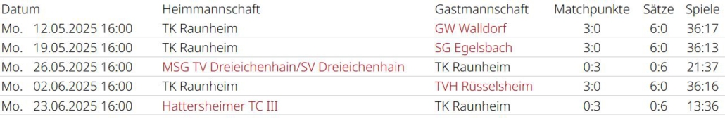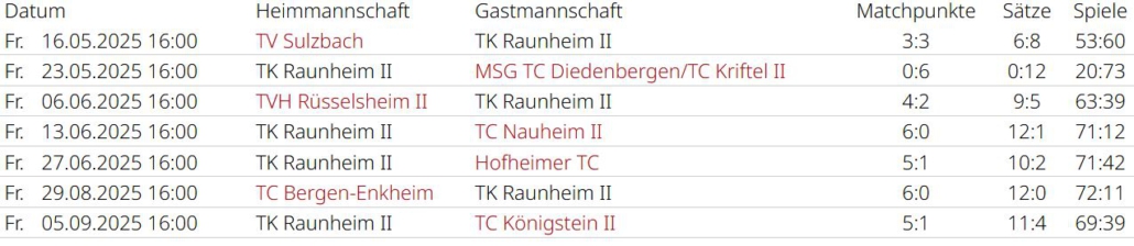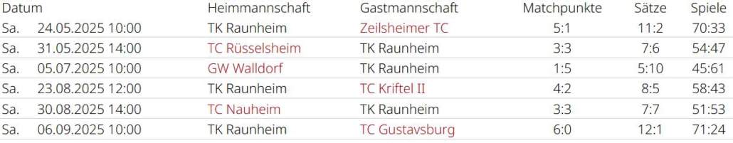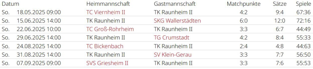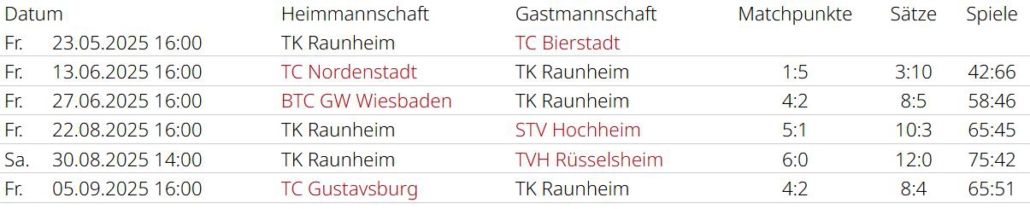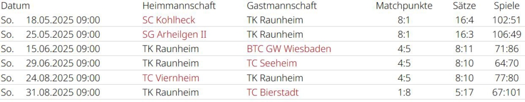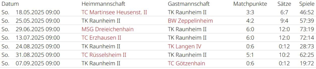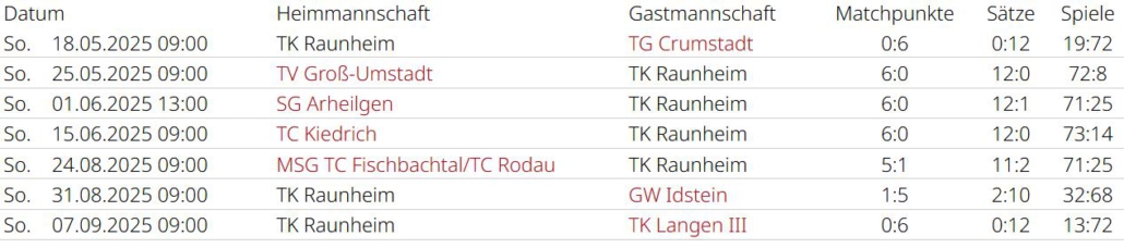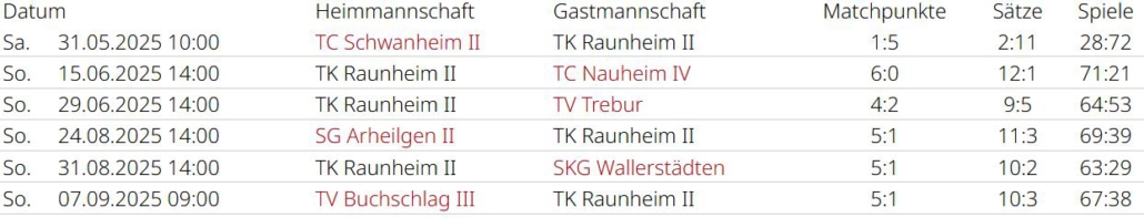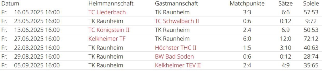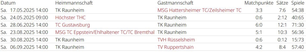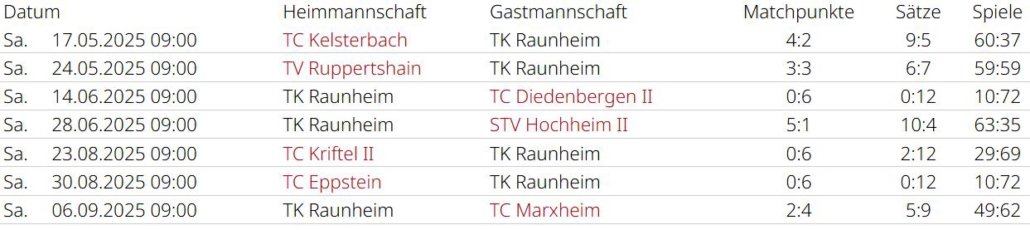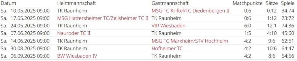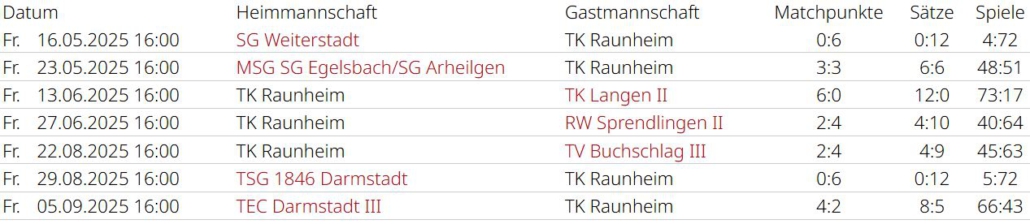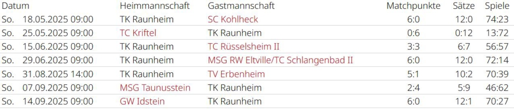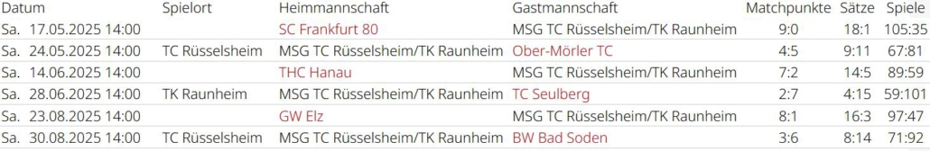 Saisonrückblick – Medenrunde 2025 – Ergebnisse, Tabellen